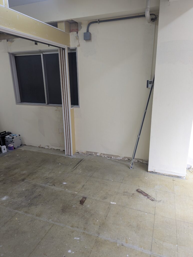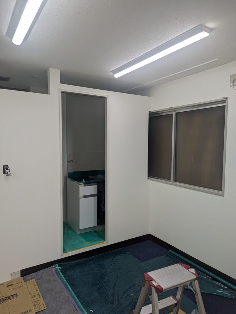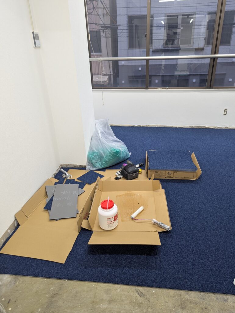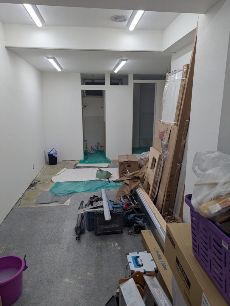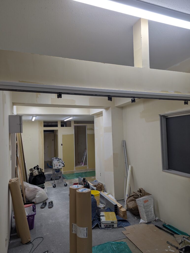 昔施工したビルの2階事務所の内装工事をおこないました。天井塗装、壁クロス、タイルカーペット、金物設置。続いて来月5階の部屋の施工に入ります。