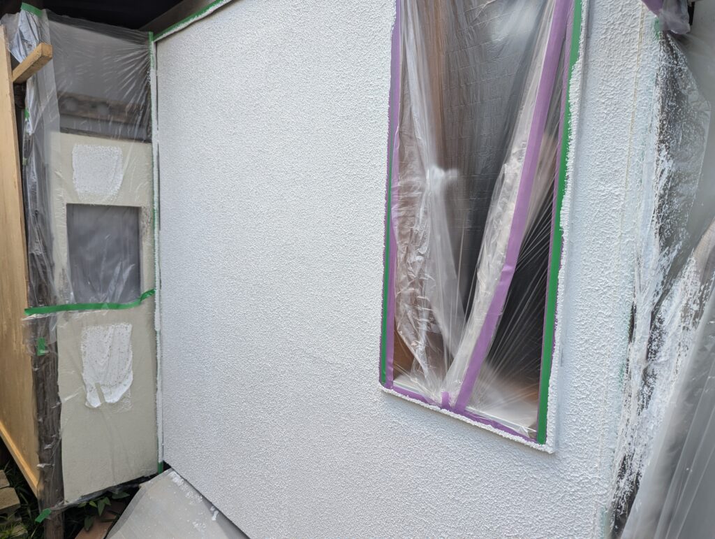 梅雨明けが発表されて暑さが増しましたね。本日から息子達は夏休みですが私は直射日光の中外壁の塗装をしております。窓を付けた事によって外壁の窓まわりを補修し、壁を新たに塗り直しました。下塗りは弾性の水性塗料を塗り上塗りはシリコン系の水性塗料で仕上げました。暑いおかげで乾きが早く仕事が進みましたが熱中症には注意をしていきたいと思います。皆様も水分補給忘れずに!