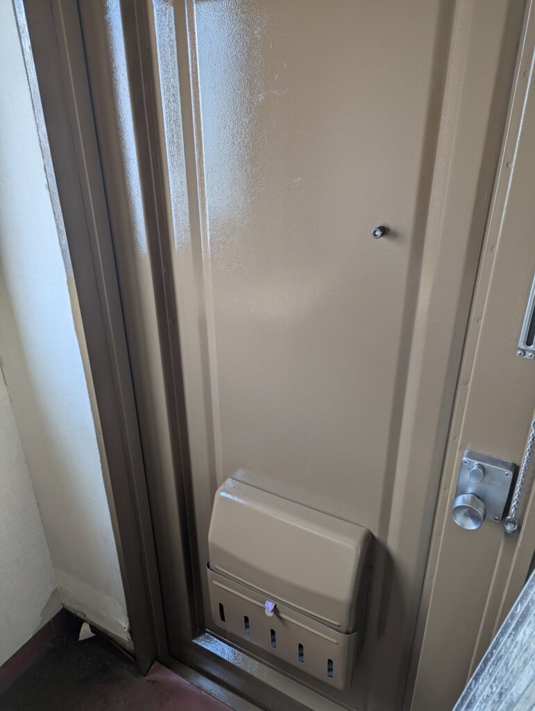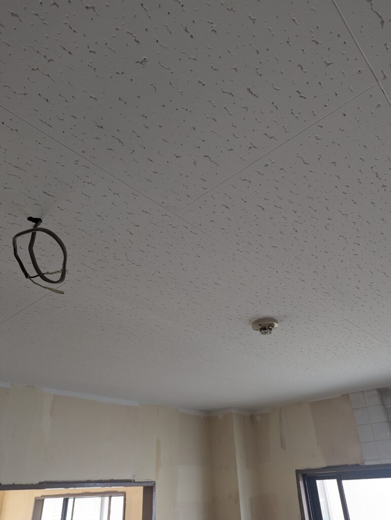 年に何回かお話しが来るアパートの原状回復工事。天井、木枠、鉄扉の塗装工事からスタートです。塗装後はクロスと床工事に入ります。