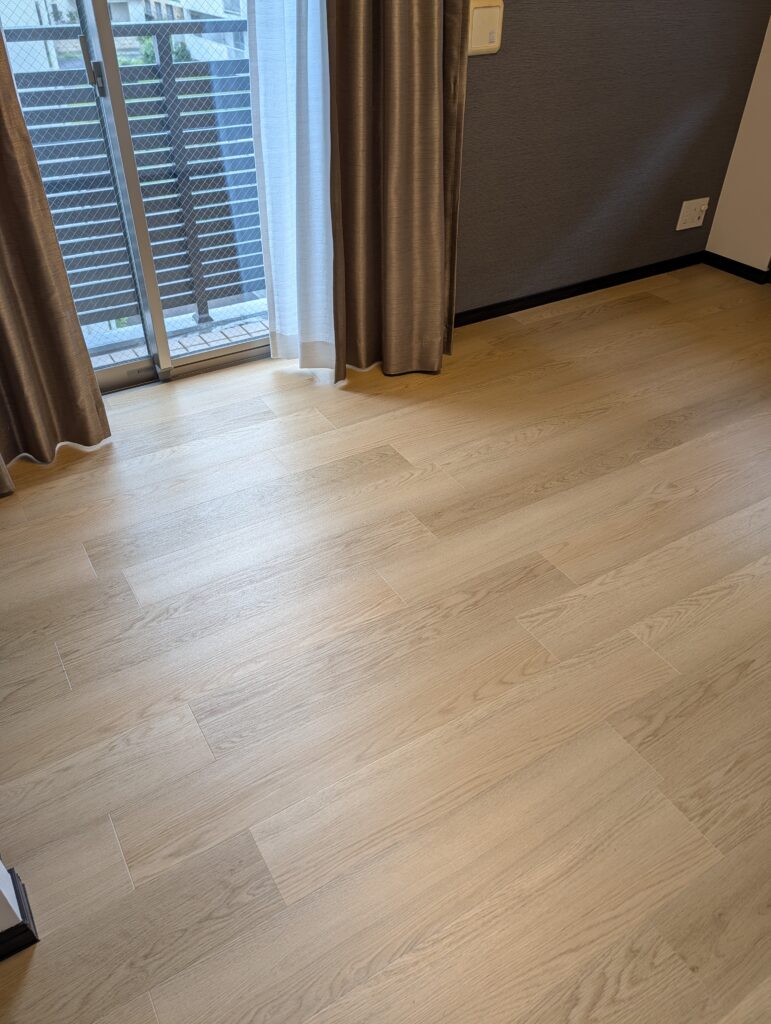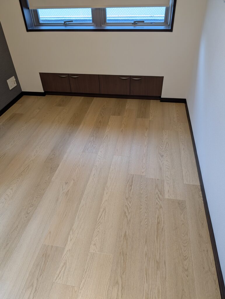 漏水した壁を一面貼り替えました。最近多いですね。雨漏りは上からだけではなく壁からも入って来ます。都内は古いマンションも多いのでこれからこういった案件が増えて来ると思います。そして窓際のフローリングが劣化をしていましたので1室床を貼り替えました。