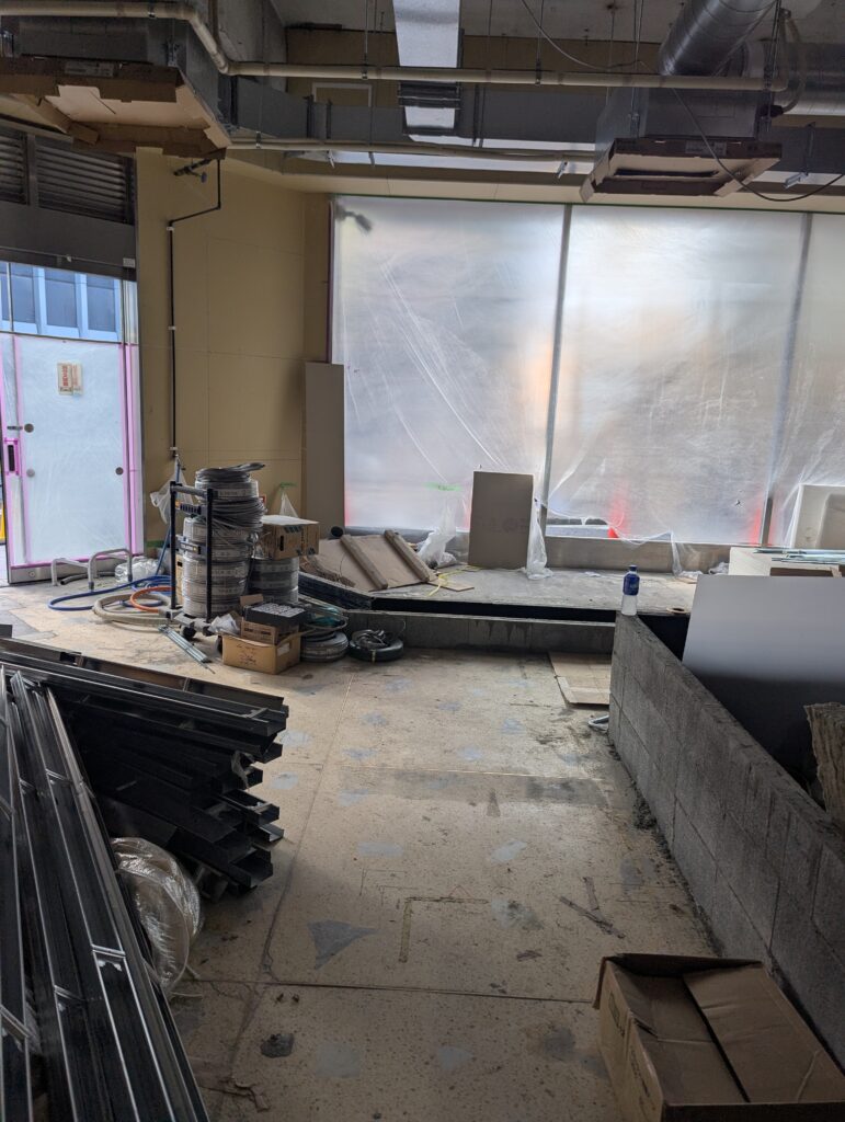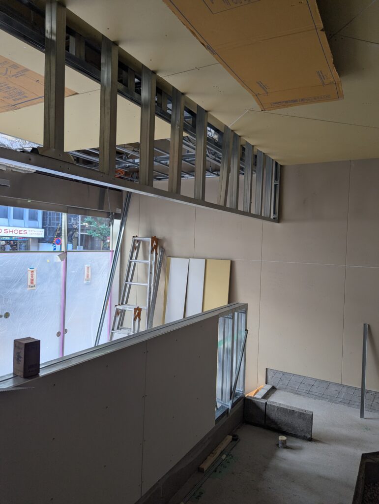 昨年から店舗の仕事が増えて来て只今1つのテナントに2つのお店を作っています。軽天ボード、左官、防水作業が行われています。来週から内装仕上げの作業に入ります。ここから今月末までに仕上げて行きます。