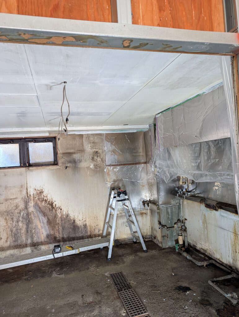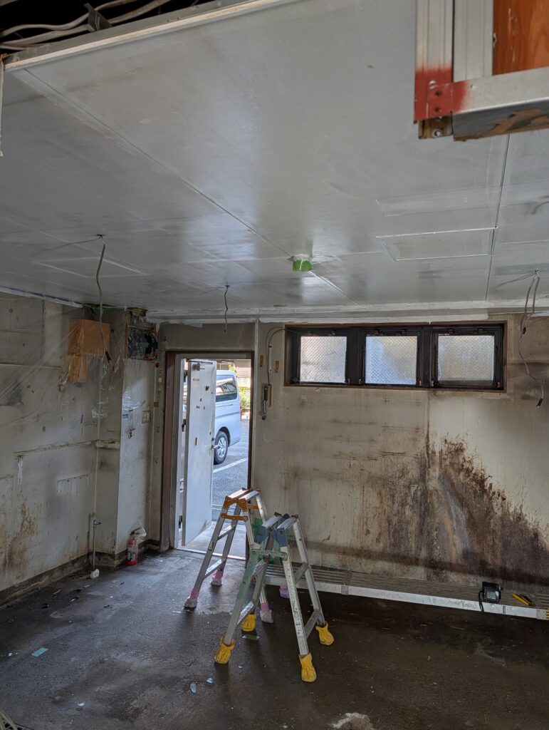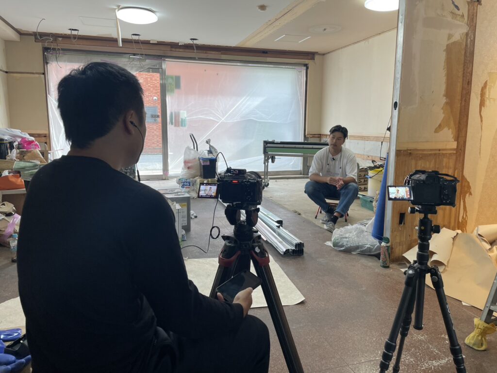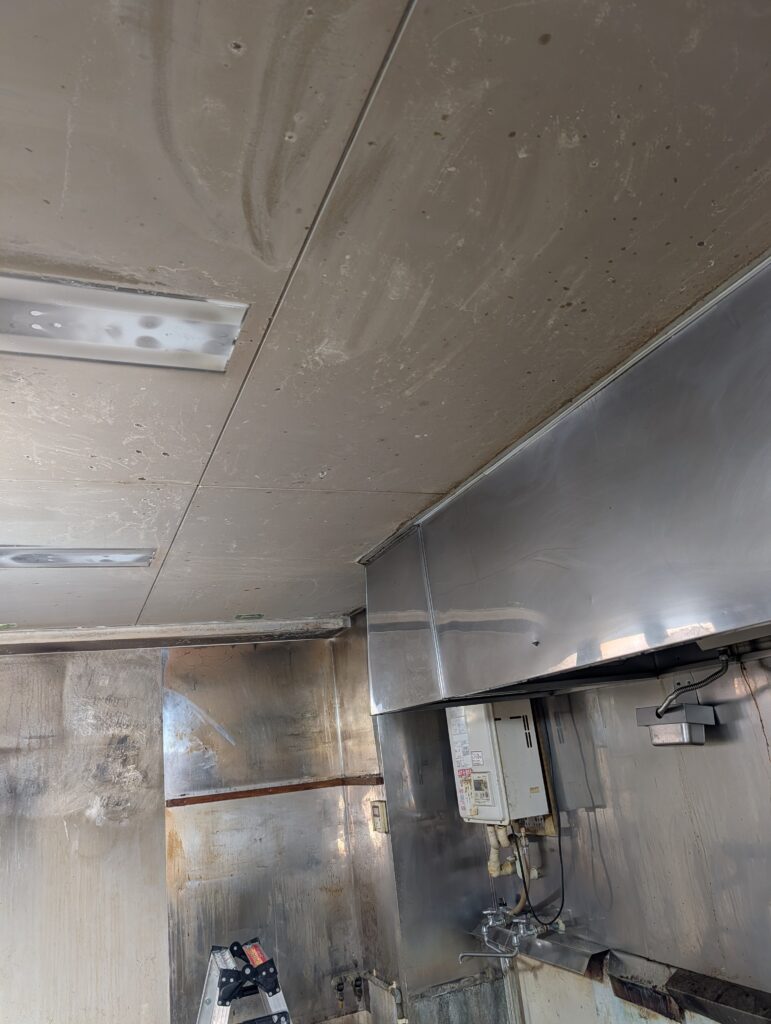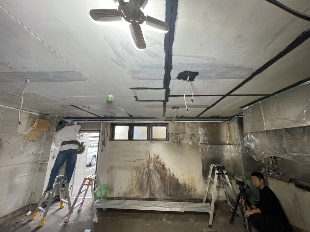先日現場に撮影が入り作業風景やコメント撮りをしました。厨房の塗装、クロスの剥がしなど何カットも撮って頂きました。厨房は油が凄くスチームと油落としをしてからシミカットをしてから、塗装作業にかかりました。動画は十数秒と短いですが出来上がりが楽しみです。