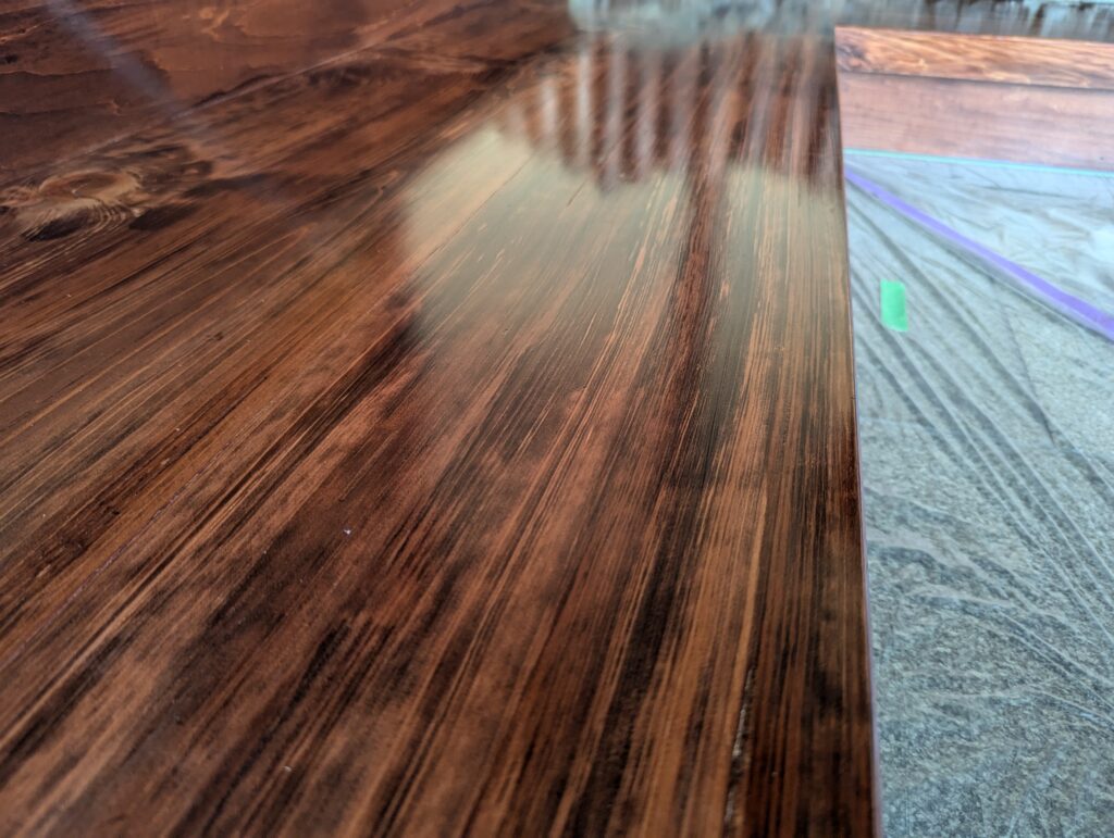 古民家のカウンターと玄関の踏み板のクリア塗装仕上げをおこないました。カウンターは削ってもとの塗膜を取りサンディングシーラーを2回してからクリア上塗りをかけました。踏み板は色を入れてサンディングシーラー