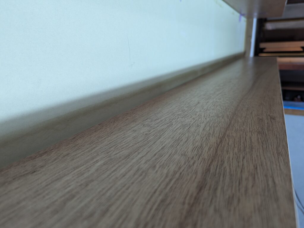 床のフロアタイル施工が完了しました。キッチンからダイニングと続き小部屋と階段下の廊下まで施工しました。やはり床が終わると雰囲気が出て来ますね。あともう少しで仕上げ施工が完了します。